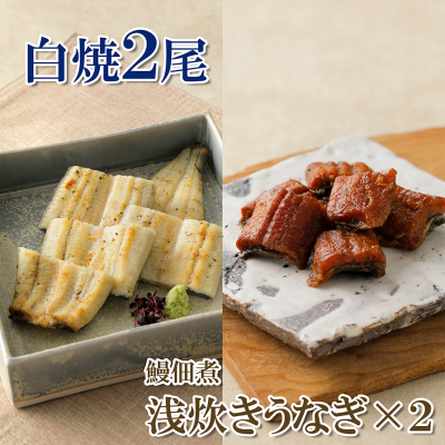 浜名湖うなぎ白焼2尾と鰻佃煮〜浅炊きうなぎ〜詰合せ