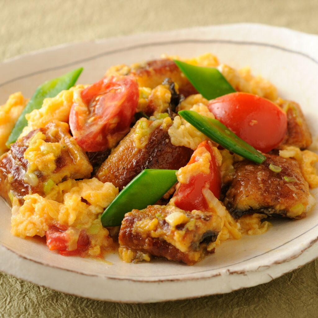 甘辛いうなぎの蒲焼に、ふんわり柔らかな卵とトマトの爽やかな酸味が重なり合う、絶妙なハーモニーが楽しめる一品です。にんにくと生姜の香りが食欲を刺激し、一口ごとにうなぎの旨味とトマトのみずみずしさが口いっぱいに広がります。彩り鮮やかな絹さやがアクセントになり、見た目も華やかでおもてなしや夕食の主菜にぴったり。家庭にある調味料で手軽に作れるのに、いつもの蒲焼きが驚くほど贅沢な中華風のごちそうに生まれ変わります。ごはんはもちろん、お酒のお供にもぜひどうぞ。