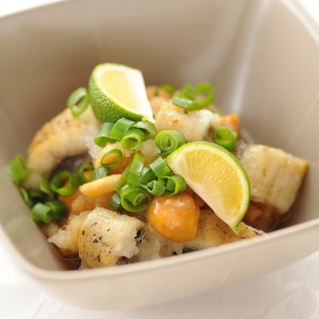 うなぎの白焼をサッと茹で上げ、なめこの食感と大根おろしでさっぱりと仕上げた、粋な小鉢メニューです。片栗粉をまぶして湯通しした白焼は、旨味を逃さず、口当たりも驚くほどなめらか。なめこのとろみと大根おろしの清涼感が、うなぎの良質な脂を上品に引き立てます。仕上げに添えるすだちの香りとポン酢の酸味が心地よく、食欲がない時や、晩酌の最初の一品にも最適です。素材の味を活かした繊細な味わいと、つるんとした喉越し。白焼の新しい魅力を発見できる、大人のための贅沢なおつまみをぜひお試しください。